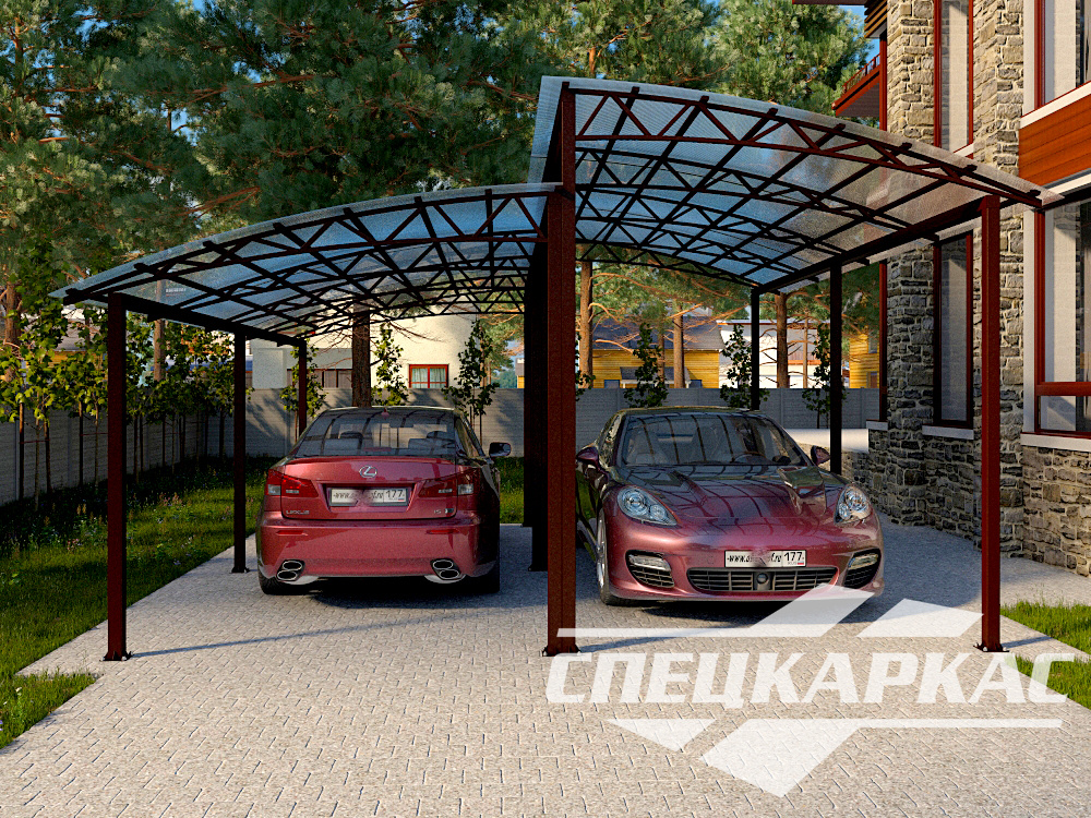 Изготовление навесов из поликарбоната под ключ в Москве. Кровля из цветного поликарбоната (15+ вариантов по таблице RAL). Каркасы из стальных труб с толщиной металла от 3 мм, покрытие антикоррозийной эмалью 3-в-1. Гарантия до 10 лет.