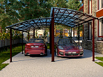 • Навес может комплектоваться следующими вариантами кровли: сотовый поликарбонат, монолитный поликарбонат,  профнастил, металлочерепица, мягкая кровля.