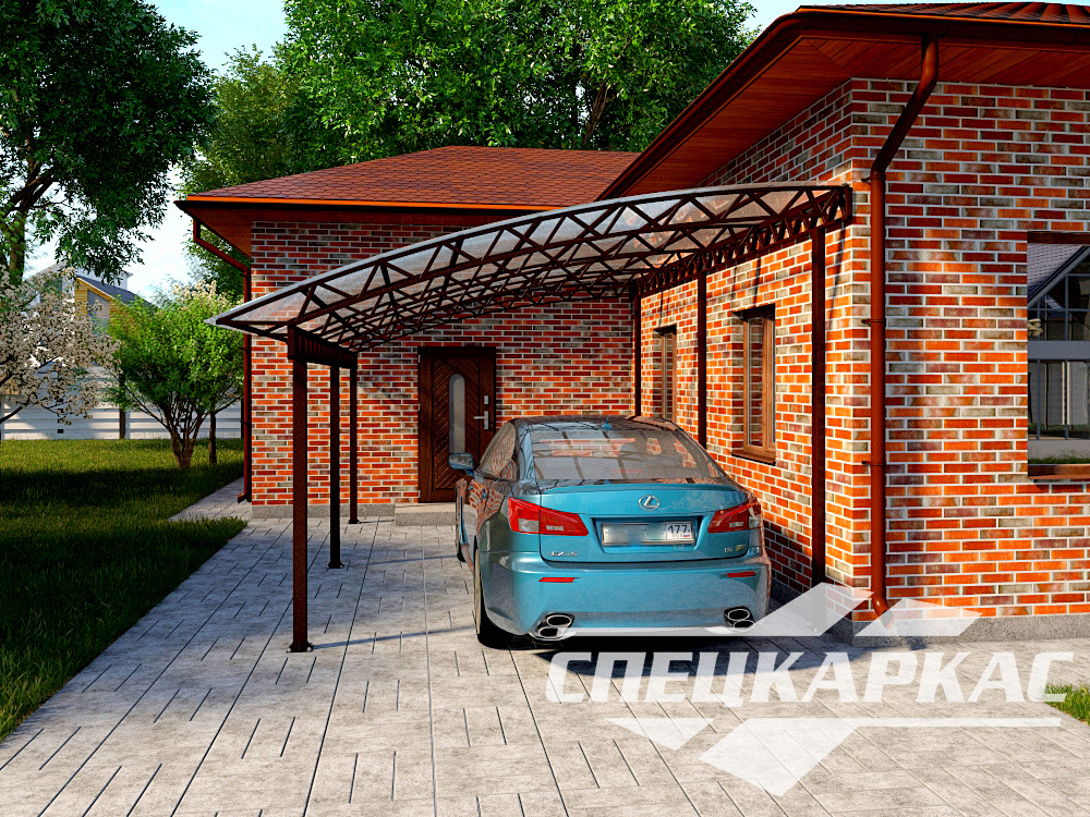 Навес для автомобилей «Никс» - оптимальное решение для ценителей простора и комфорта в архитектурном ансамбле дачного участка.